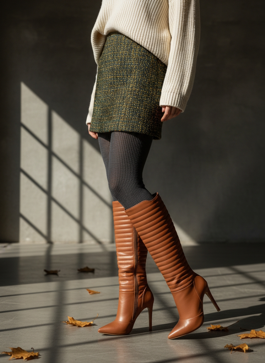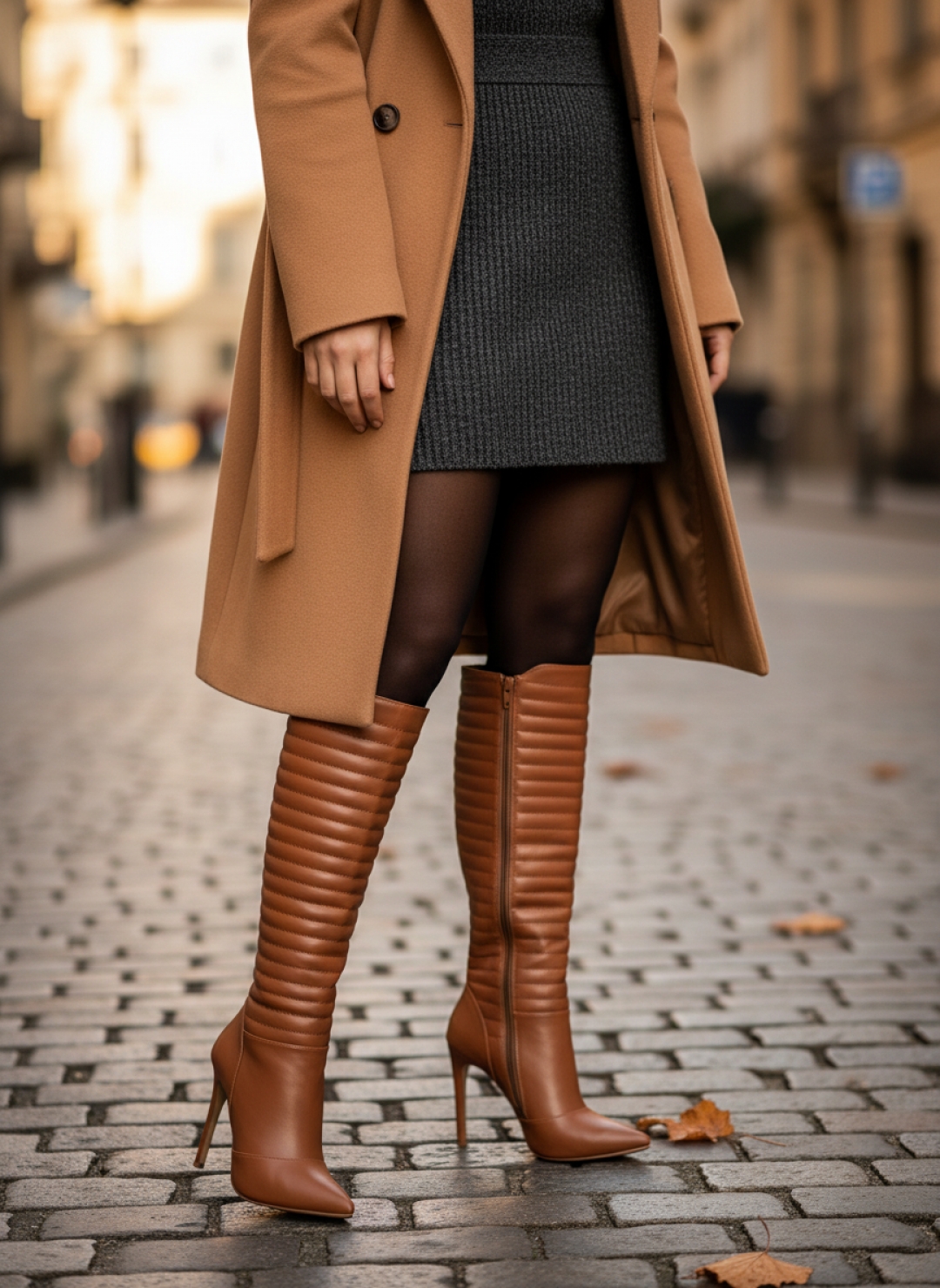 A versatilidade da Bota Feminina Salto Alto 12 cm Caramelo permite diversas combinações: